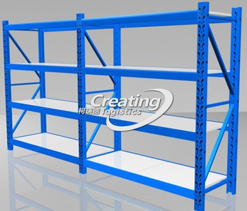 中型货架主要适应存放货物较轻的仓库,中型货架每层承重为200-500kg。