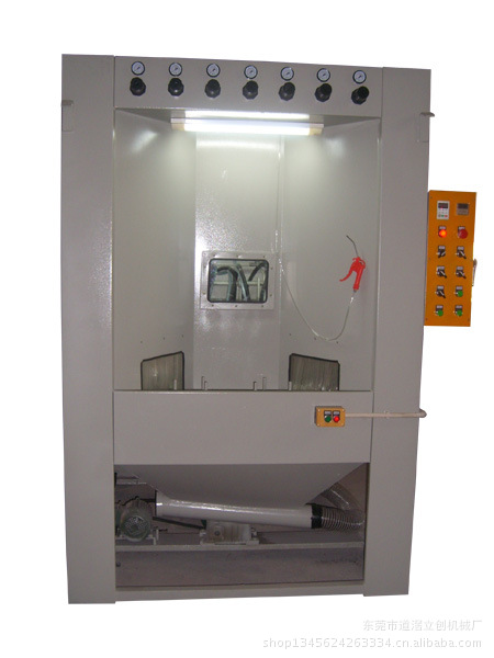 机器性能:各种圆形、椭圆形、四方形、盘类及异形件的喷砂处理,内配备有8支喷枪可同时对准两工件,工作台可旋转。如:不粘锅、电炒锅、电饭煲,烤盘(炉),洗物盆,发热盆(管)、铝轮廊、工艺品、装饰品及通讯器材表面喷砂处理。