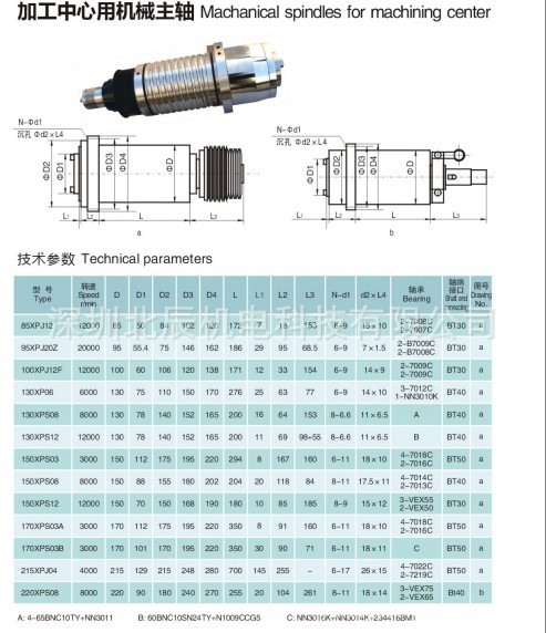 供应加工中心专用机械主轴/20000转机械主轴/高转速