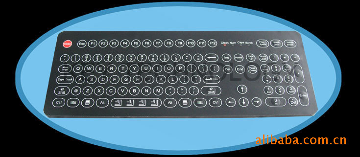 产品概述:IP68防尘防水防暴的工业薄膜独立台式键盘,108个按键紧凑布局,数字键区和功能键(F1, F2…F11, F12)布局在键盘顶部,非常有利于操作。整个键盘采用镀金锅子按键技术,0.45mm按键行程,按键触感好。工业USB/PS2接口可选。红色清洁键可以锁上键盘/使其键盘暂时不能工作以便键盘的清洁和清洗,从而达到不需要从电脑摘除键盘就可以进行清洗和清洁。