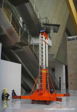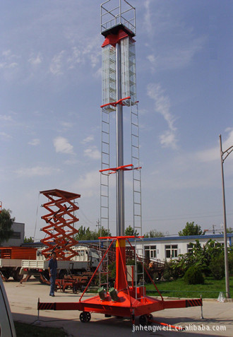产品特点:套缸式高空作业台为多级液压缸直立上升,液压缸高强度的材质和良好的机械性能,塔形梯状护架,使升降台有更高的稳定性。即使身处20米高空,也能感受其优越的平稳性能。