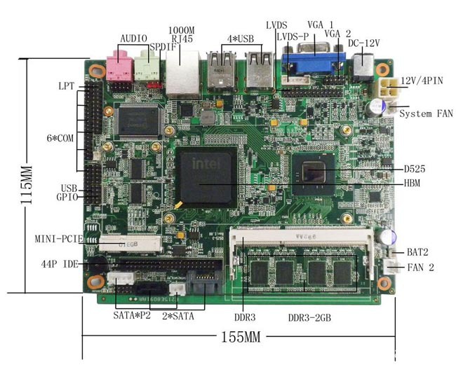 芯片组: 英特尔®凌动D525处理器+ICH8快速芯片组