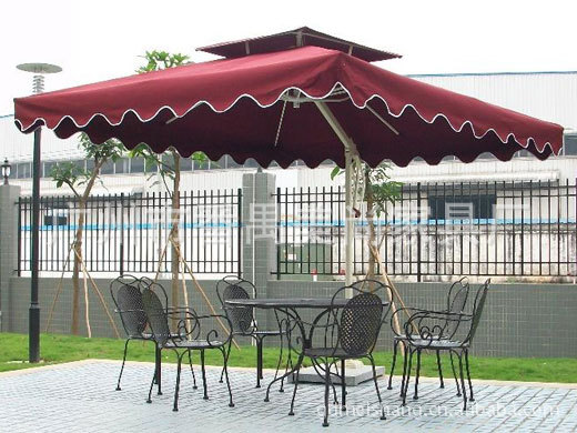 产品配置:直边(波浪边),手推卡,双层顶天窗,大理石底座,加粗形伞骨,高档新形伞盘。