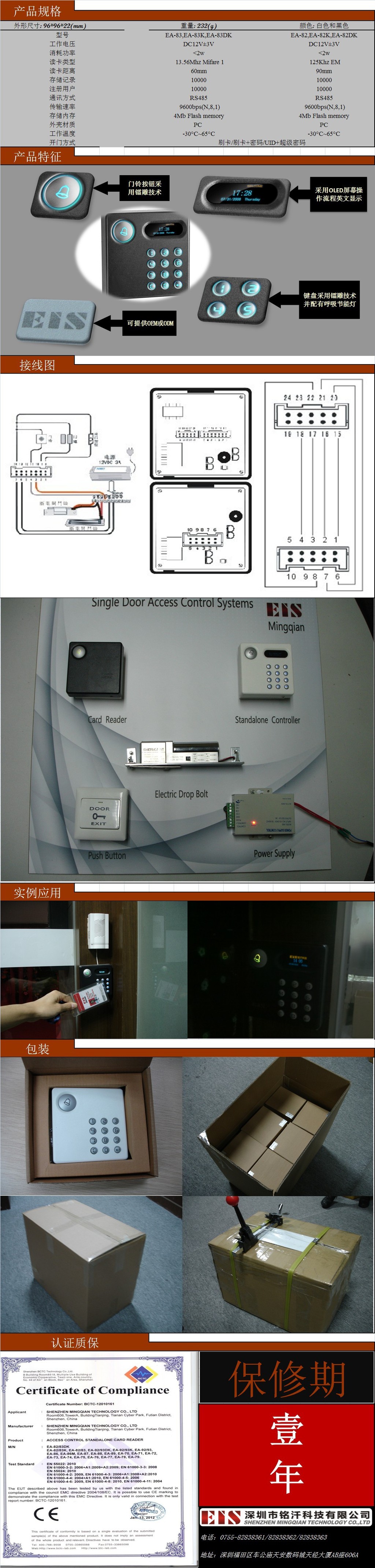 | 读卡频率: 125 KHz | 开门方式: 卡/ 卡+密码/ UID+密码/超级密码 |