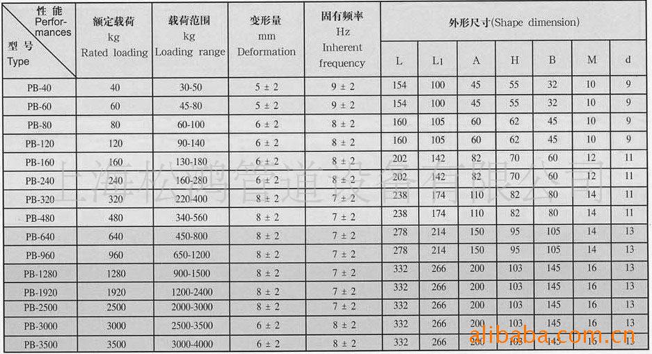 PB型板式橡胶隔振器是有铁板、合成橡胶模压硫化而成,有六种规格,十二种载荷组成,具有结构简单、安装更换方便,载荷范围广,固有频率低,适应工作-5~50℃,阻尼比≥0.078,PB型板式橡胶隔振器可用于管道泵、立式、卧式水泵、风机、冷水机组、热泵机组、发电机组等动力设备的隔振。