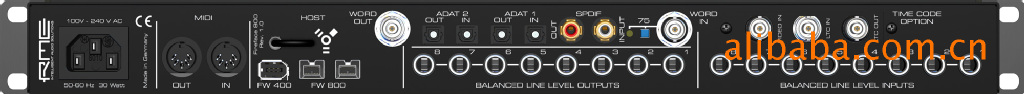 字时钟I/O,(高速)MIDI I/O,SPDIF I/O同轴缆(可兼容AES/EBU)