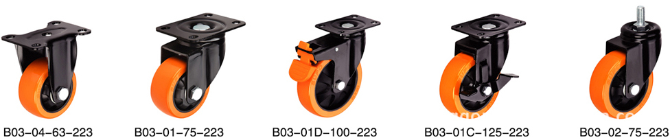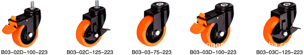 范围:适合于要求防水、潮湿的环境中使用。使用温度为-35~80℃,轮子表面邵氏硬度为95A.