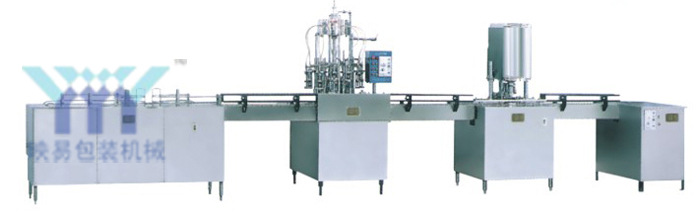 该生产线集冲瓶、灌装、旋盖输送组成,适用于PET塑料、玻璃瓶的灌装。本生产线采用了微负压灌装方式,可用于矿泉水、纯净水、果汁饮料的灌装,是食品饮料厂家的理想设备。