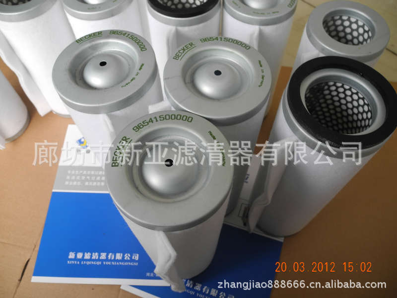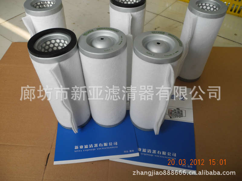 新亚滤清器有限公司专业生产真空泵系列滤芯所使用的滤芯材料完全产自美国、德国、意大利、南韩等国家的进口优质滤材,质量优异,性价比高,适合各类旋片真空泵配套使用。如:BECKER贝克尔, BUSCH普旭, LEYBOLD莱宝,RIETSCHLE里奇乐国产XD系列等进口品牌国产真空泵的滤芯互换. 公司承诺如出现质量问题公司负责条换或退货!使用期限4各月。如有疑问请来电咨询!产品常用型号有:BECKER贝克96541400000 96541300000 96541500000 96541600000 96541200000 96540900000排气过滤器