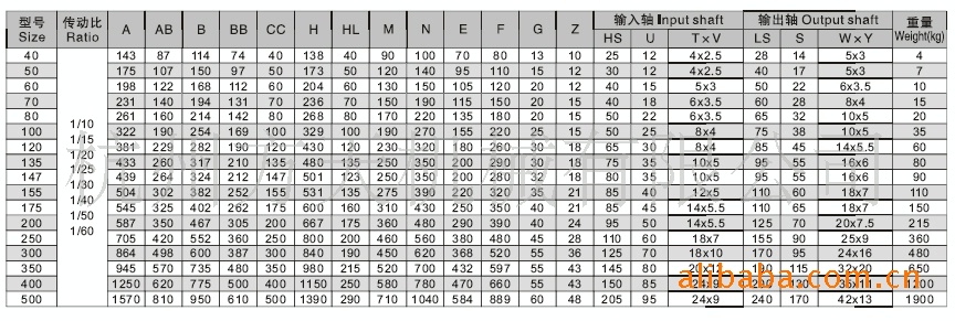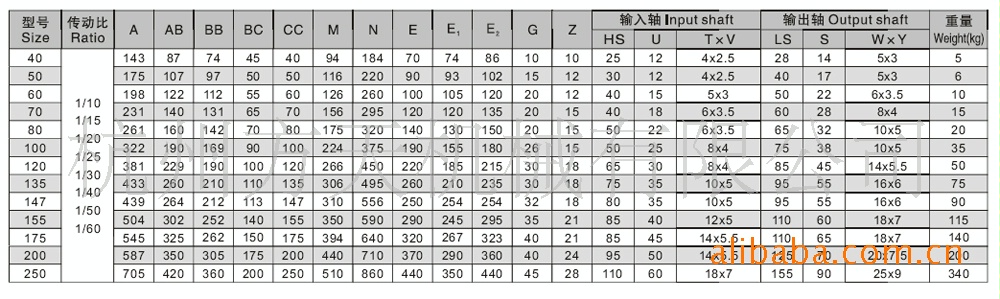 各个型号参数图: