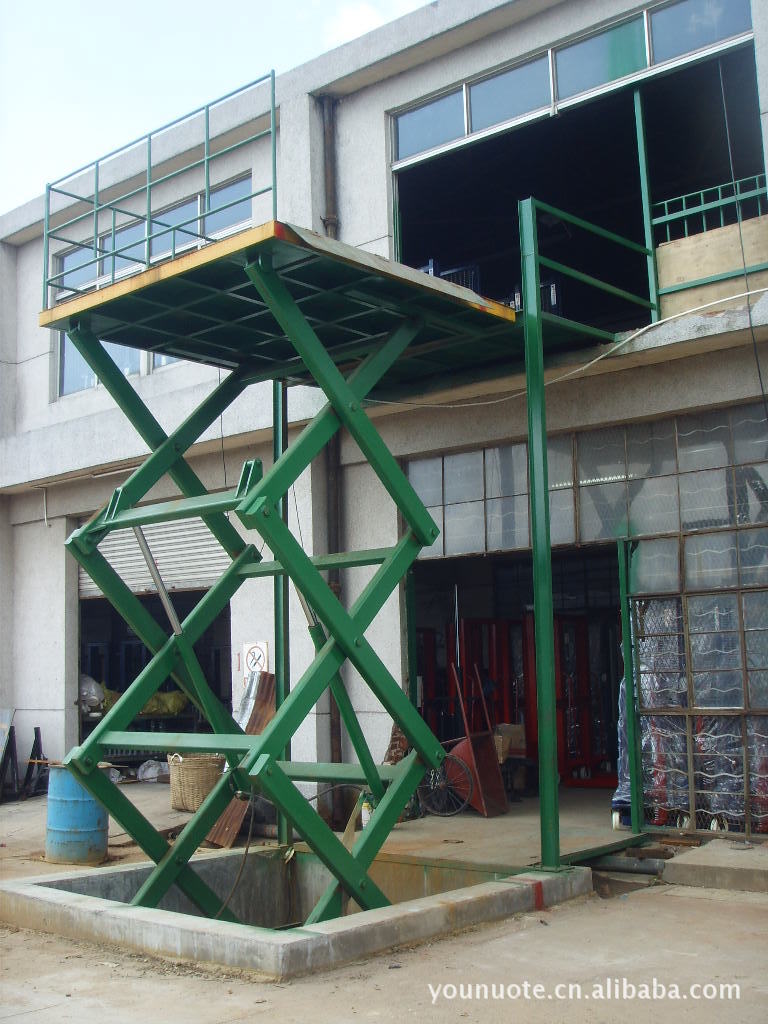 固定式液压升降货梯:该产品是用于建筑物层高间运送货物的专用液压升降平台,产品主要用于车间、仓库和各种工作搁层间货物上下;运送立体车库和地下车库层高间汽车举升等。产品液压系统设置防坠、超载安全保护装置,各楼层和升降台工作台面均可设置操作按钮实现多点控制。产品结构坚固,承载量大,安装维护简单方便,是经济实用的低楼层间替代电梯的理想货物输送设备。