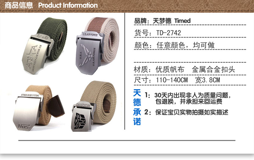 义乌厂家腰带批发休闲帆布腰带 TD2742 男式加厚腰带 裤带腰带,如有特殊要求(如尺寸、颜色、包装等)请联系在线客服详谈。