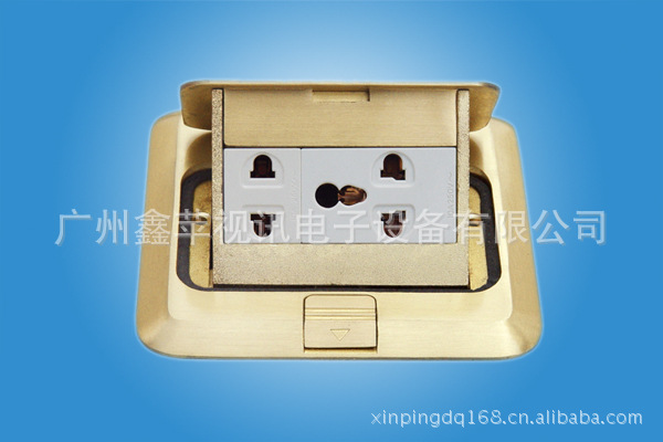 ●弹启式地面插座,安装于厅、室内任意位子的地板平面上,供接取电源,或电话、电脑、麦克风、电视等线缆传输信号之用。