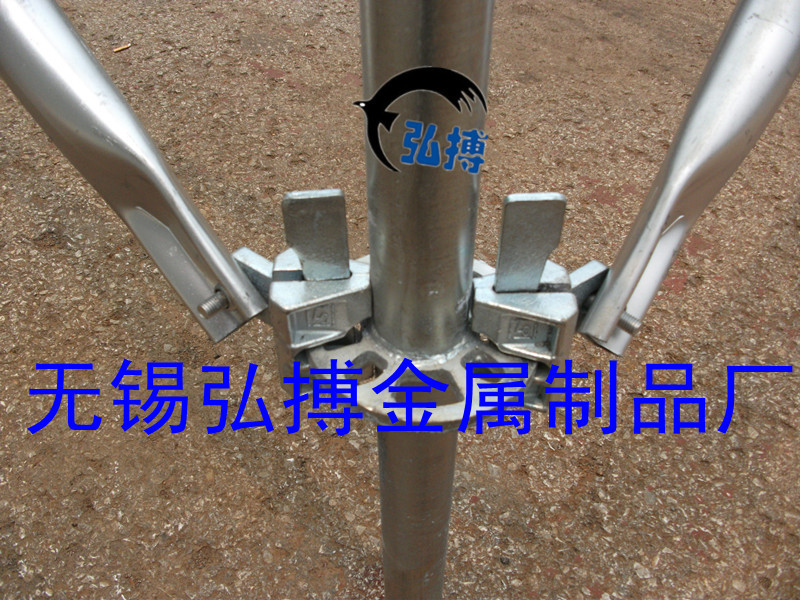 本公司所生产的雷亚架(舞台架)又称园盘式脚手架是一种新型脚手架。该产品于八十年代中期从欧洲引进,是继碗扣式脚手架之后的升级换代产品。该产品拥有可靠的力学强度和自锁性能,而且拼装快速、省力、避免了螺栓作业和零散扣件,降低劳动强度,速度是常规脚手架的5倍以上,能方便组装成多种荷载力的脚手架和各种支撑承力架结构稳固可靠。该产品的表面处理方式有冷镀、热镀、等。
