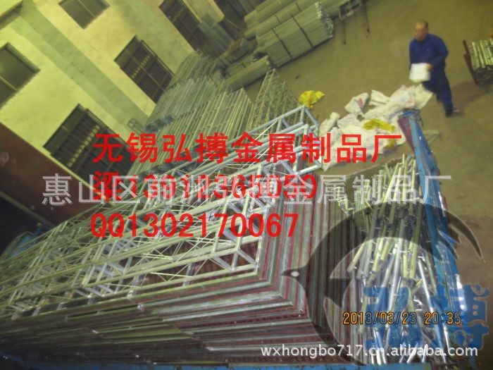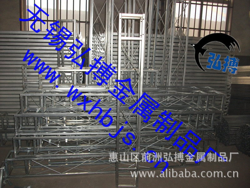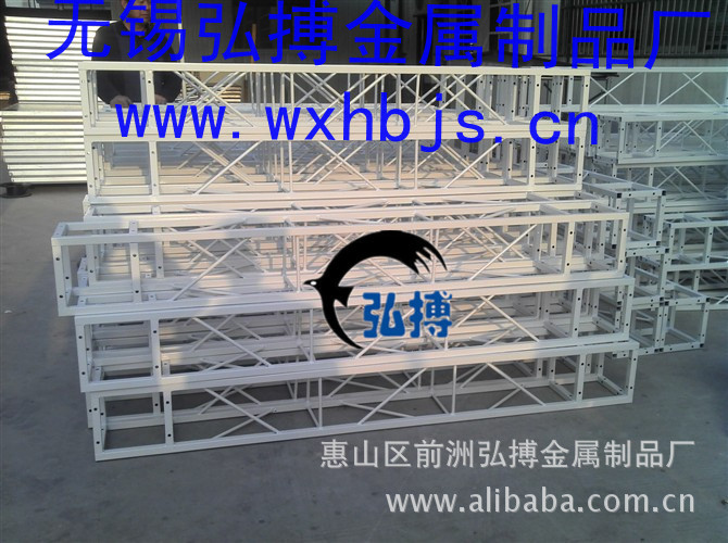 一:钢铁桁架:200mm*200mm,250mm*250mm的方管钢铁桁架,有镀锌,喷漆(红,黑,蓝)喷塑等3种式样,且我公司生产的方管桁架为加强型桁架,自带接头、五面连接,不需要另外配接头,解决了安装繁琐,接头不易损坏等问题,一般20规格桁架为小桁架,安全跨度为8米,25规格桁架安全跨度为12米。