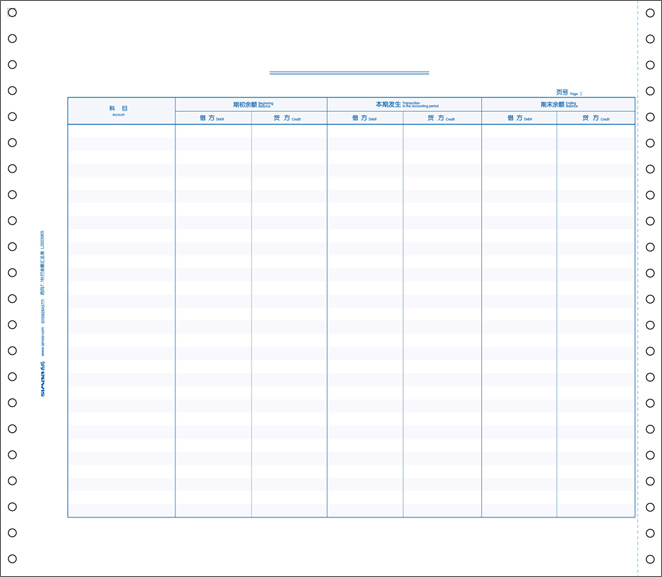 ●西玛通用针打71规格 71针打账簿纸(335*292.1mm),经典的针打凭证尺寸;套打设置简单,无需下载补丁;符合国家标准,配套使用; 装订更加整齐美观。 ●良好的送纸功能,连续打印,不卷曲不卡纸 采用100%UPM纯木浆优质原纸,不起灰,不卷曲,环保健康; 生产过程中精确的湿度控制,纸张打印平整,不卡纸; ●降低60%打印量,提升效率 纸面预印财务内容表格,使用时只需将数据进行打印即可, 这样可以有效降低约60%的打印量,迅速提升打印速度,提 高工作效率。 ●单张形态设计,易撕,装订方便 两侧预设装订孔,方便装订成册; 专为财务人士设计的精致切刀工艺,手撕线拉力强,易撕; ●查询方便,时尚美观 预设“制表日期”、“页码栏”等打印信息位置,便于财务查帐; 彩色设计,色块区分,页面美观时尚,数据便于查询; ●防潮,保存15年不变质 内外包装OPP塑封,防水,防潮,防霉; UPM原纸,纸张长期保存不变质、不褪色; |