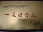 河北省安平县金城滤纸厂源建于1993年,是专业生产内燃机工业用滤纸的国内最大的企业之一,主要生产纯进口木浆抄造的各种高端滤纸,并主要为国内外的重卡、工程机械车辆等企业以及滤清器企业做配套生产,共有3条现代化先进生产线,年产"五环"牌空滤, 油滤,燃滤等内燃机工业用滤纸7000多吨。是中国首家采用无纺布工艺,制造高级滤纸的生产厂家。 滤纸采用先进的工艺及高新技术成果制造而成, 具有优良的耐水耐油和固化性,韧性好,抗冲击力强。