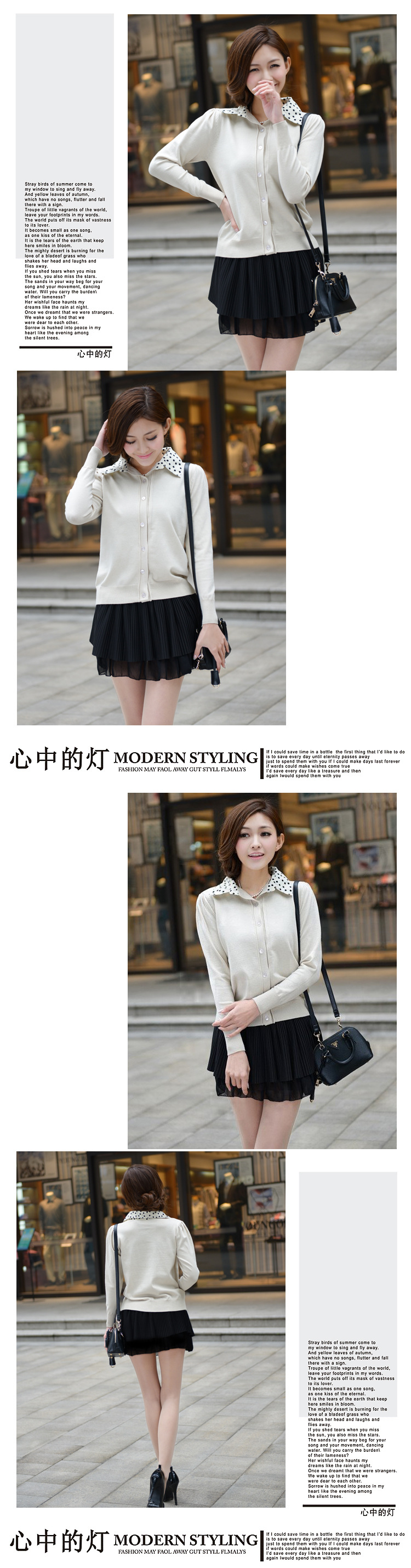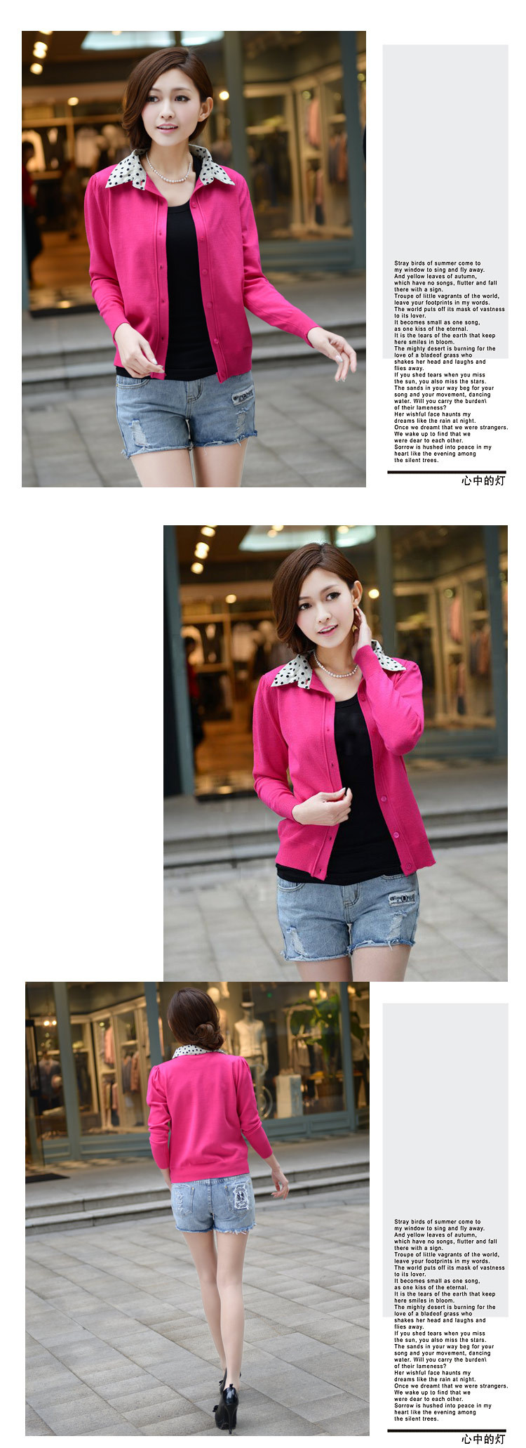 实拍春款女装 韩版衬衫领针织打底衫中长款开衫针织衫外套大码