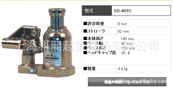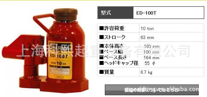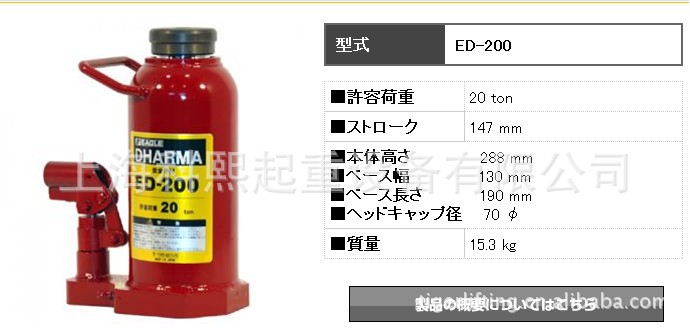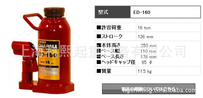 日本鹰牌(EAGLE)生产的千斤顶在日本国属于重工业级产品与防灾害救援产品属于高品质一级液压工具,EAGLE大部份产品的特点为,材质优、做工细、寿命长、安全级别高。可应付各种环境施工、针对于土木、设备搬运、精密仪器安装大大提高了工作的效率与便捷性。