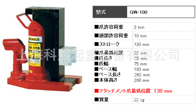 4、鹰牌GW二段式爪式千斤顶附爪有两处位置可选。