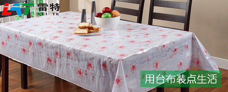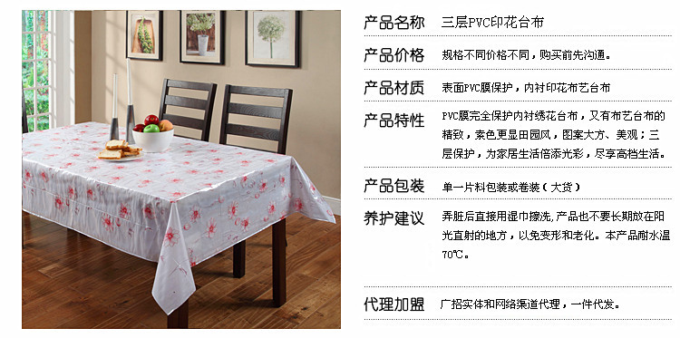 【产品材质】PVC膜双层保护,内嵌布艺印花桌布,将PVC塑料和布艺完美结合