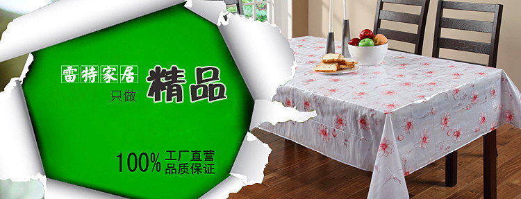 东莞市雷特家居用品有限公司——华南地区颇具影响力的桌布台布制造专家,公司专注于家居用品的开发生产,独具匠心地运用高新技术,以前瞻创意的视角和设计理念,开发生产PVC台布、PVC桌布、蕾丝台布、镭射台布、冠印台布、压纹台布、烫金台布、发泡台布、透明台布、无纺布台布、转金台布、印花台布、布艺台布、无纺布等产品,现已成为国内品种最多、创新能力最强的家居装饰用品生产厂家。致力于为更多追求幸福的家庭提供多一份爱的装饰。
