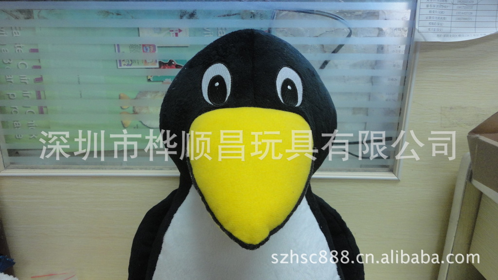 机绣工艺:企鹅的眼睛是采用机绣工艺。精细的做工,更加逼真,显得公仔更加精致高档。