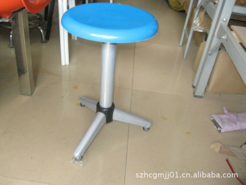 支架是直径5厘米圆钢管 三个脚是钢管 高温焊接后 静电喷涂。座面是直径30厘米的塑胶材质。不可以升降。