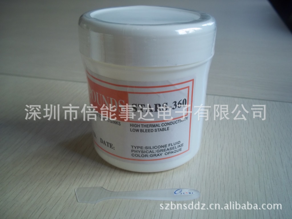 产品简介 导热硅脂(导热膏、散热膏)是特为电子元器件热量传递而制的新型有机脂,采用特殊配方生产,使用导热性和绝缘性良好的金属氧化物与有机硅氧烷复合而成。 1.良好的热传导性与电绝缘性、减震、抗冲击. 2.很好的使用稳定性,较低的稠度和良好的施工性能,使用工作温度范围宽(-50℃~+240℃,不同型号温度范围有差别),耐热,高温下不会干涸,不熔化. 3.对相关材料不腐蚀,无毒、无味,耐化学腐蚀。 4.户外运用可免除紫外光、臭氧、水分和化学品的不良影响.用途: 提高敏感电路及元器件的可靠性,延长使用寿命,广泛应用于电子、电器、仪表等行业的弹性粘接、散热、绝缘及密封。 1.用作电子元器件的热传递介质。 2.电脑CPU,GPU(显卡芯片)与散热器填隙及热传导。 3.大功率三极管与铝、铜基材接触的缝隙处的填充。 4.可控硅元件二极管与铝、铜基材接触的缝隙处的填充。 5.降低各类发热元件的工作温度。