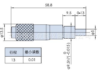 产品特点:前端为平头,适合顶圆面,行程13,最小读数0.01,尾部为手轮,螺母为标准型,不锁紧,标准安装尺寸,可配套调整架或位移台,可与细牙螺杆互换。
