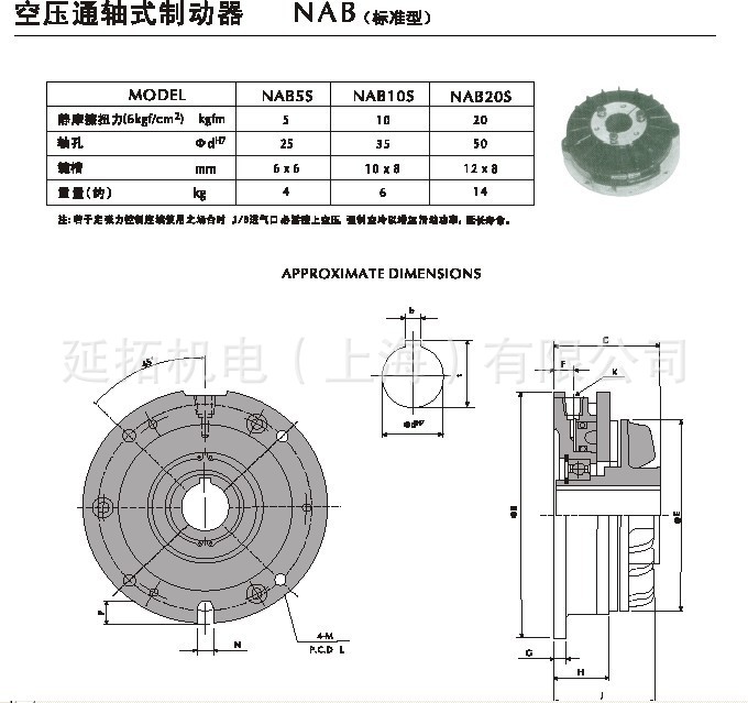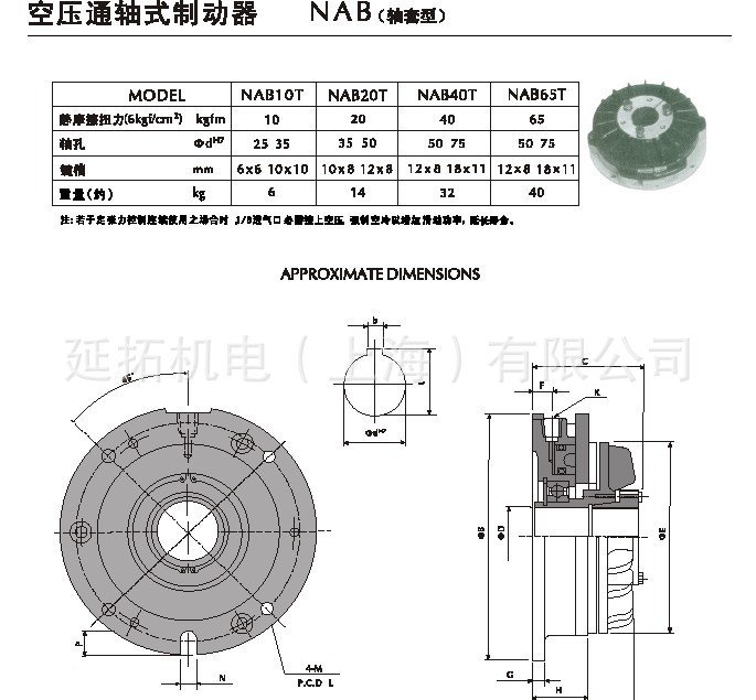 气动制动器型号主要有:NAB-5S NAB-5T NAB-10S NAB-10T NAB-20T NAB-40T NAB-65T
