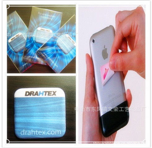 中山文荣工艺品为各企业制定的个性手机清洁贴 手机屏幕擦等实用性信息传播载体正逐渐代替传统的纸张类传播方式,成为主流的信息传播工具。可重复使用的特点,增强传播效果的同时节约了国家能源,手机屏幕擦,低碳、时尚、高效广告宣传的引领者!| 产品名称 | 随意贴手机擦,iPad擦,粘式手机擦,手机擦拭贴,手机清洁贴,N次贴 |
