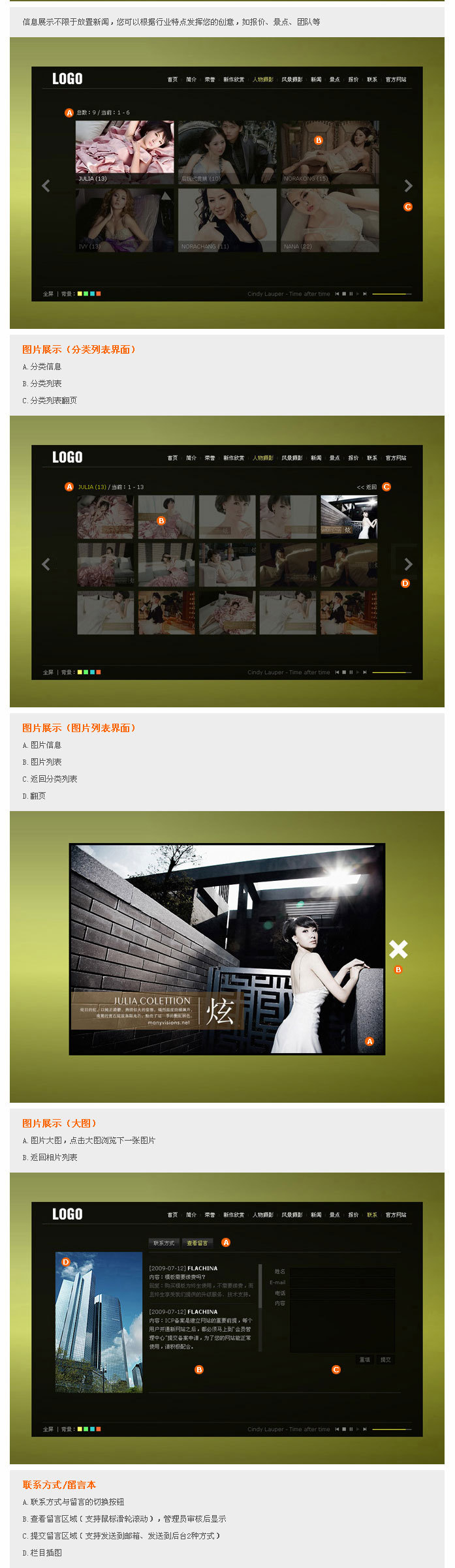 (三)技术领先!传统flash网站一般采用FLASH+XML结构制作,需要专业技术才能完成网站更新,而我们使用了全新的技术构架,flash+.net的结构,这样用户拥有了管理后台,强大的管理功能支持简介管理,文章管理,图片管理,视频管理,音乐管理,菜单管理,留言管理等等,彻底解决了flash网站更新难的问题。