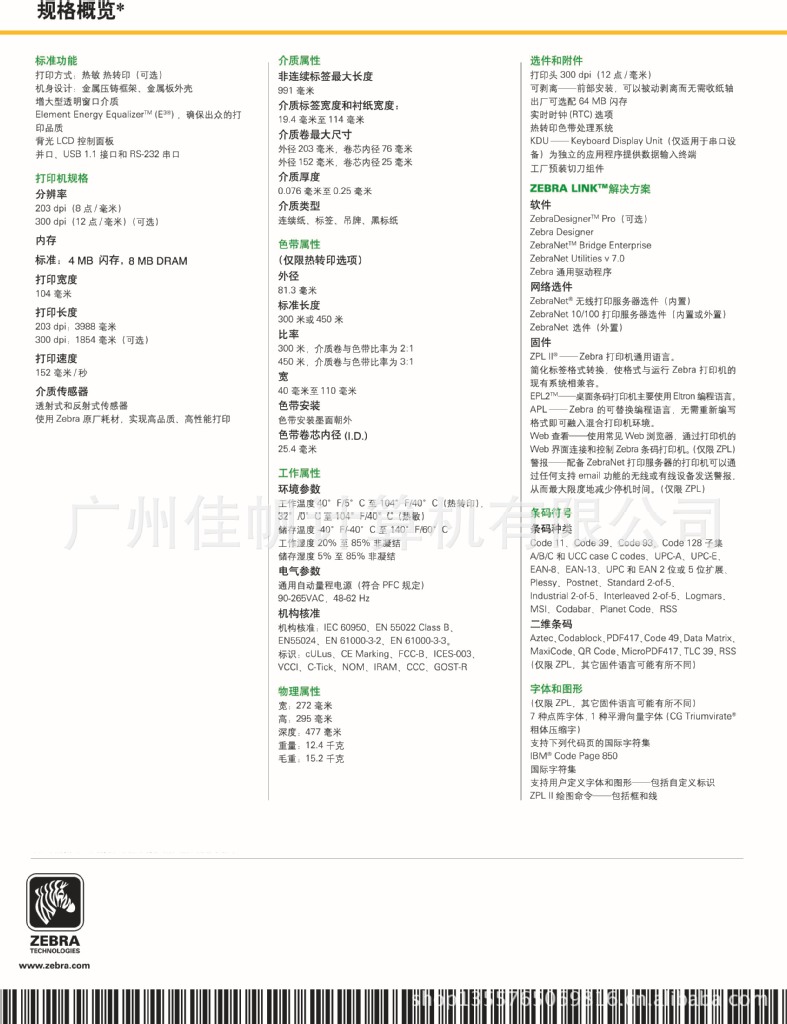欢迎购买我们公司(广州佳帆计算机有限公司)的产品,拥有足够的实力和信誉,是美国斑马(Zebra)公司的金牌代理商。报价同行业最低。