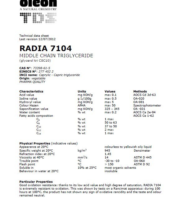 供应欧荔安(OLEON)植物来源油脂丙二醇二辛酸酯二癸酸酯R7208