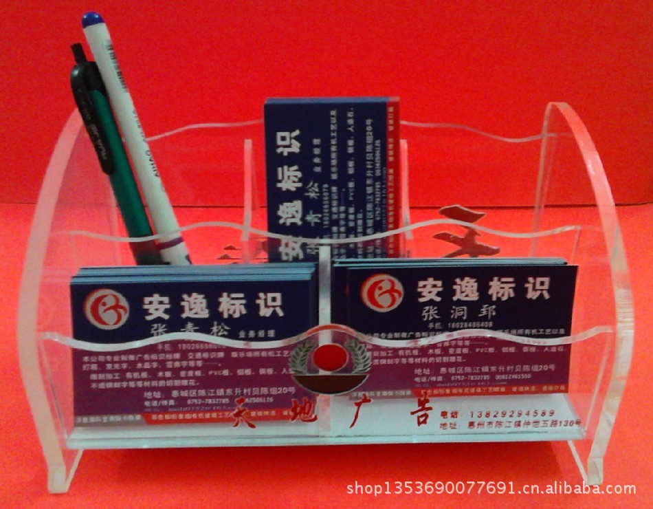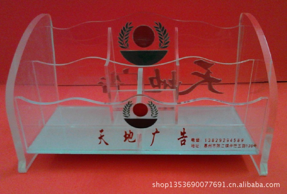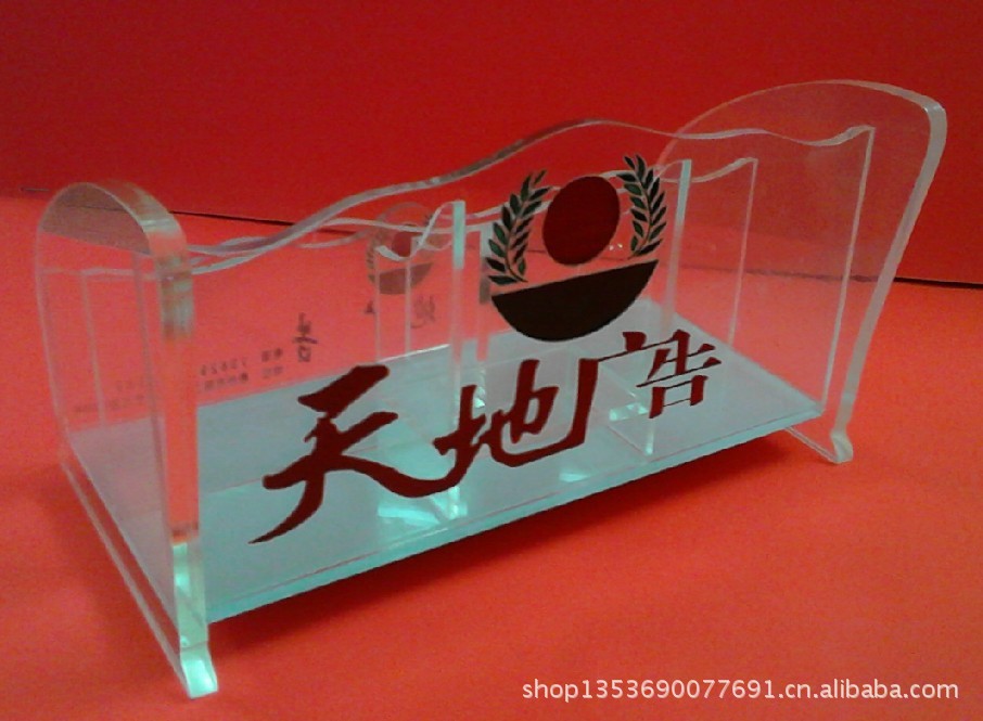 本公司主要生产亚克力工艺品,电子产品展示架,化妆品架,手机架,纸巾盒,名片盒,鞋架,柜台架,书架,超市系列展示架,日用工艺品,职责牌,铭牌,胸牌,广告标识交通牌,交通标识牌,授权牌,台卡,指示牌,工作平牌,奖牌,灯箱,发光字,水晶字,雪弗字,浮雕通花板,玻璃工艺,克力是一种有机玻璃,具有良好的透明性,化学性,稳定性,可以订做.等等