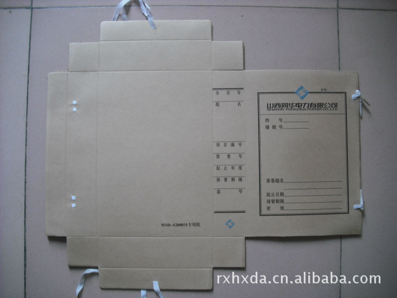 被广大用户誉为“以质取胜,以价取胜”的厂家。 我厂被多家省、市、自治区档案局评选为定点生产厂家。产品全部采用进口木浆牛皮纸、无酸纸(采用国际上先进的AKD中性施胶工艺,无酸纸腐蚀,该纸达到国家档案局《公文用纸耐久性测试》中最耐久纸的要求)使档案长期保存,不变质、不褪色,具有防虫、防霉等特点。 本厂始终以“质量求生存,创新求发展、信誉赢客户”为宗旨,以“诚信”为座右铭,赢得广大档案界朋友的支持和厚爱,热忱欢迎各界朋友前参观考察