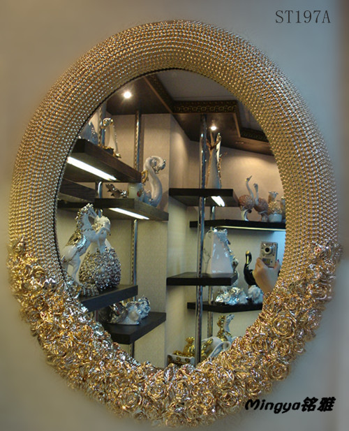 厂家直销 树脂电镀工艺品 玫瑰花雕圆镜 ST197A