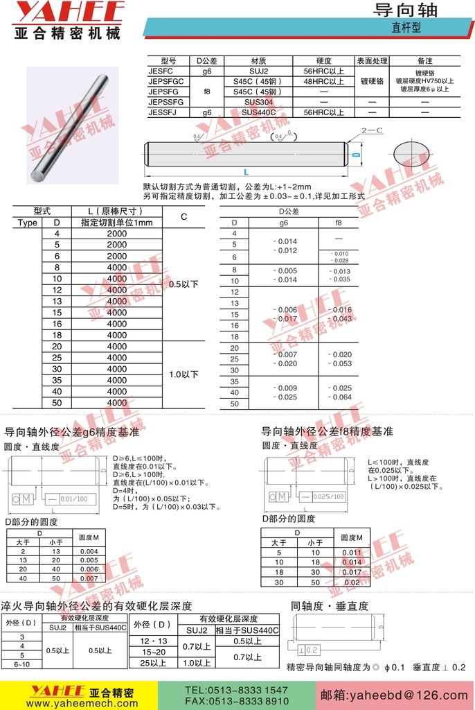 本公司可提供进口、国产优质导向轴,淬火硬度56HRC以上,表面镀铬处理,直线度、光洁度、圆周度完全可以替换日本产品。欢迎选购