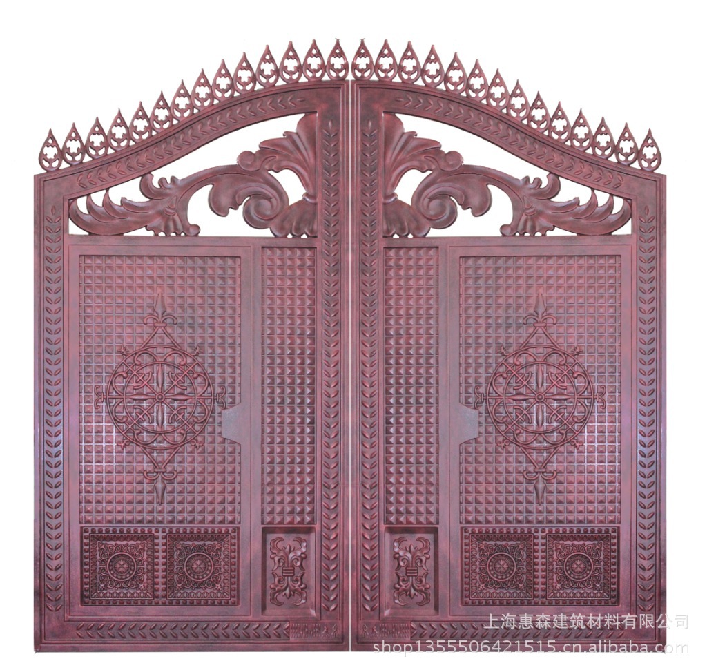 庭院门是采用现代高科技处理工艺,实心铸铝,整体浇筑,进口油漆使表面具有色泽鲜艳、色调艳丽、柔和、雅致、光洁度强等优点。制造出的铸铝门可保持长久不褪色、不生锈、耐腐蚀、稳定性好。