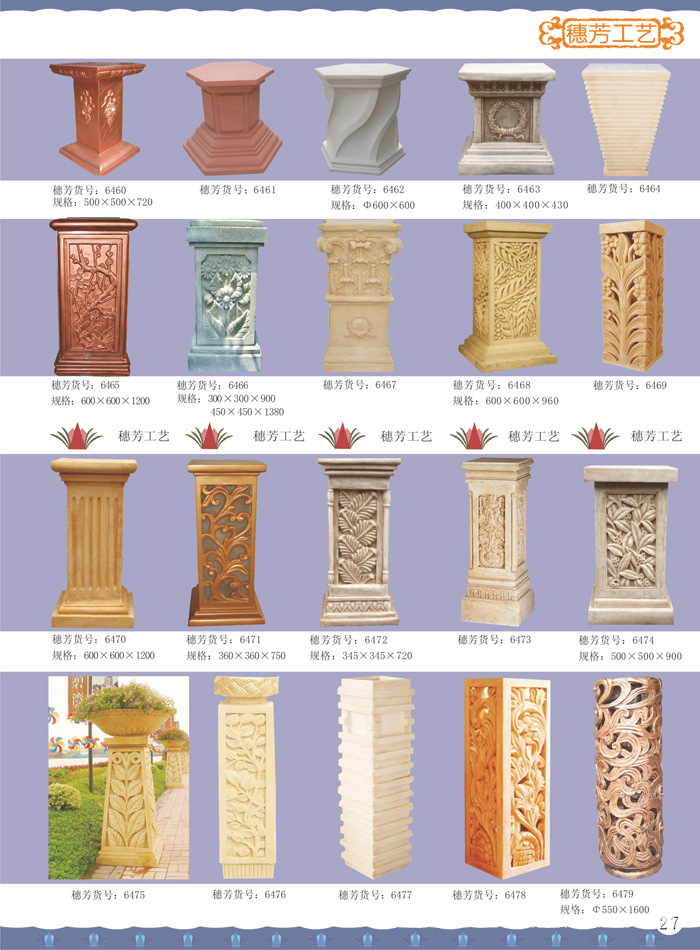 我公司专业制作各种建筑装饰材料:浮雕、花件、罗马柱、柱头、梁托、栏杆、门框和窗户等。外形美观,款式多样,具有浓郁的欧式和复古风格,给予人们高品位的享受!