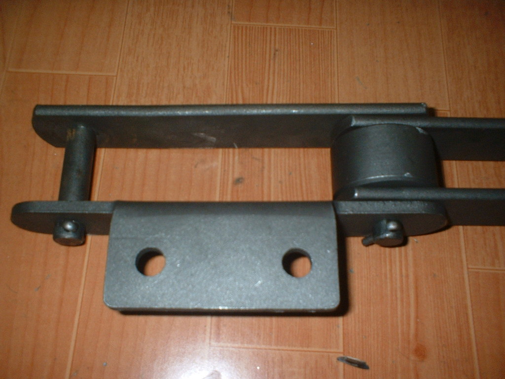 链条滚子有小滚子(S型)、大滚子(P型)、凸边滚子(F型)、空心销轴结构、轴承滚子。链条附件形式有:单侧弯板、双侧弯板、侧滚轮/尼龙滚轮、加长销等。