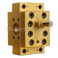 这种熔体泵是一种正位移输送设备,高精度的齿轮间隙和容积式结构设计,使稳定均衡的挤出成为可能,在化纤、造粒、塑料薄膜、片材、板材、型材、管材、电线电缆、拉丝、复合挤出等生产线上得