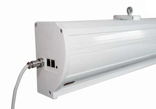 电动拉线幕具有精美铝合金外壳,流线型设计,可以减少安装的空间,紧凑的结构使其可置于房间内任何地方而与之融为一体,外罩静电喷粉钢琴白/黑色,与任何室内装饰风格十分协调。幕布收放平滑安静,采用管状电动机升降。轴内电动装置系统,操作安静无噪音,控制形式多样,标配是线控开关。