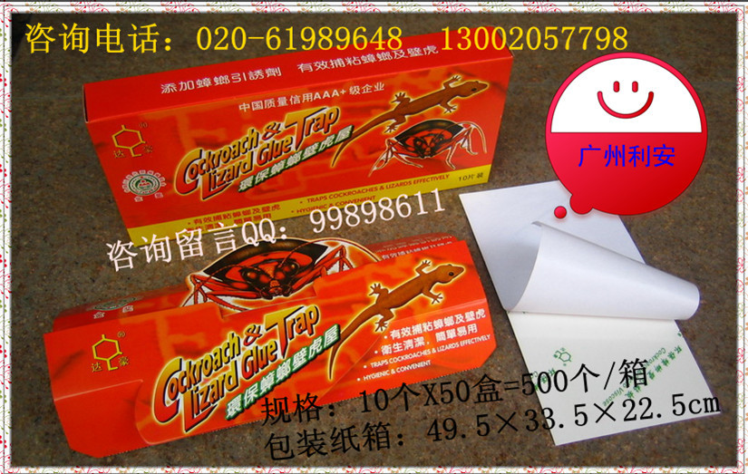 1.防除蟑螂及壁虎:易粘蟑螂及壁虎,使其无法逃脱,达成最佳效果。
