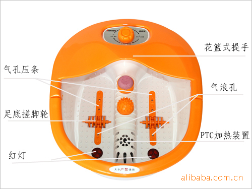 自动恒温 气泡磁疗 舒适搓脚 红外热灸 旋扭控制,保温提手盖,人性化的提手设计,让您使用更方便舒适