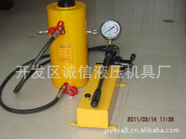 5、使用时先将手动泵的快速接头与顶对接,然后选好位置,将油泵上的放油螺钉旋紧,即可工作。将放油螺钉旋松,油缸卸荷。