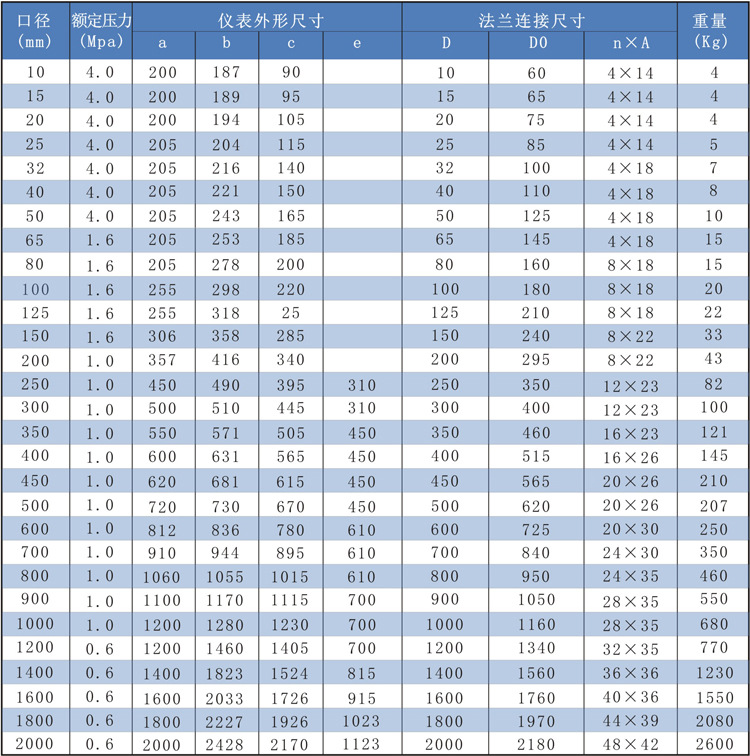 ※:适用于口径DN250以上,DN250以下口径可提供不锈钢法兰,不锈钢外壳产品(1Cr18Ni9Ti)。