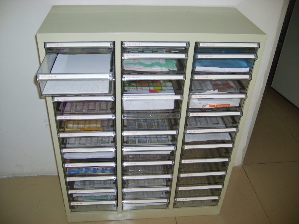 2.抽屉前端附各颜色标签卡片,可标明屉内存放之文件,资料等名称,分类储存管理,提高工作效率。