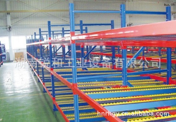 入口端输至出口端,而后来的货物依次相接,达到储存的目的。同时实现先进先出,并可实现一次补